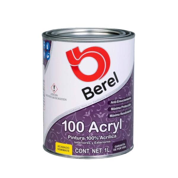 • Pintura Berel 100 Acryl este tipo de pintura esta creada con resinas donde son cien por ciento acrílicas teniendo una gran resistencia al lavado, a las manchas, al desgaste, y no contiene plomo.