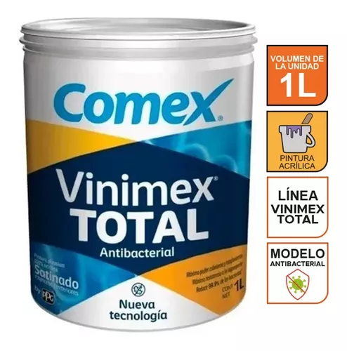 • Pintura Vinimex de Comex este tipo de pintura reduce hasta un 99% las bacterias, a los hongos, al moho, tiene un alto poder de recubrimiento, los pintores de casas la recomiendan por su buen recubrimiento.