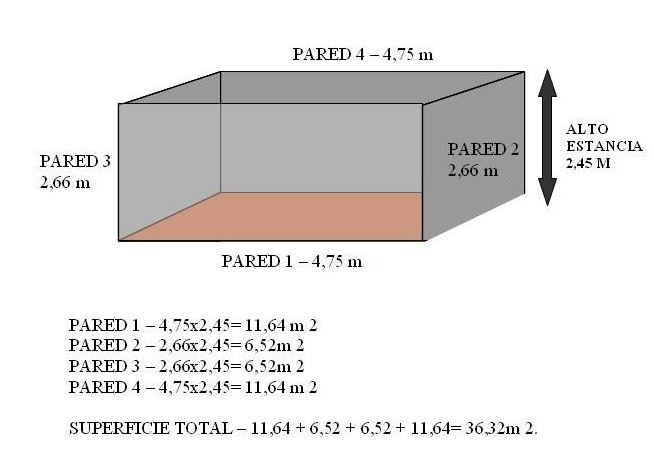 Como pueden ver el cuarto de entrada no tiene los muros de la misma medida y esto puede pasar por eso es conveniente medir con exactitud para ti como pintor y para que el cliente vea a detalle el metraje esto es la parte que comentábamos y lo que intentamos inculcar porque es muy importante la honestidad de los pintores de casas para los clientes, entonces una ves que tenemos todo el metraje de los muros ahora medimos la altura donde en este ejemplo tenemos 3 metros de alto, ahora si sumamos todo los metros de las 4 paredes y nos da un total de 25 metros este lo multiplicamos por los 3 metros de altura y nos da un total de 75 M2 de esta recamara.