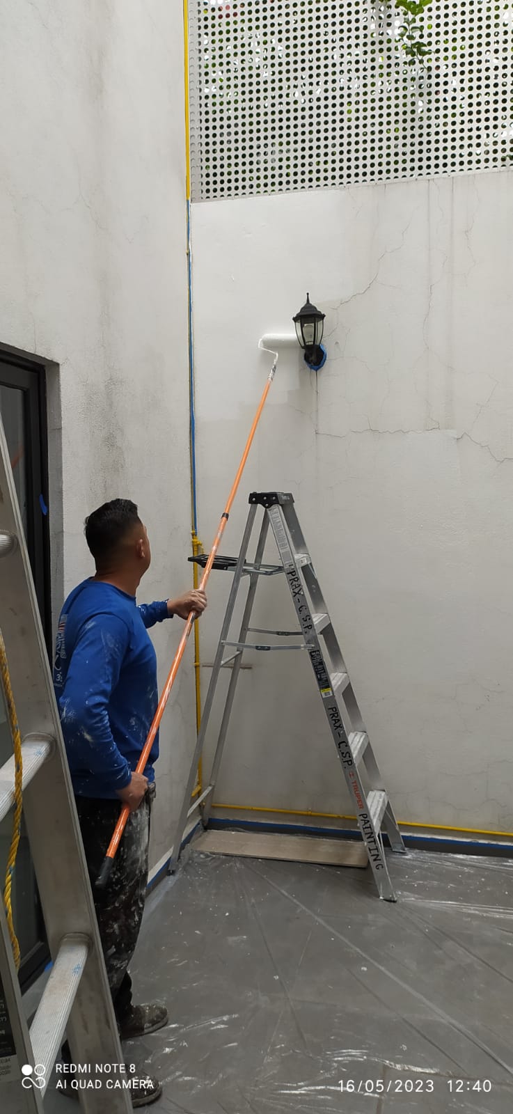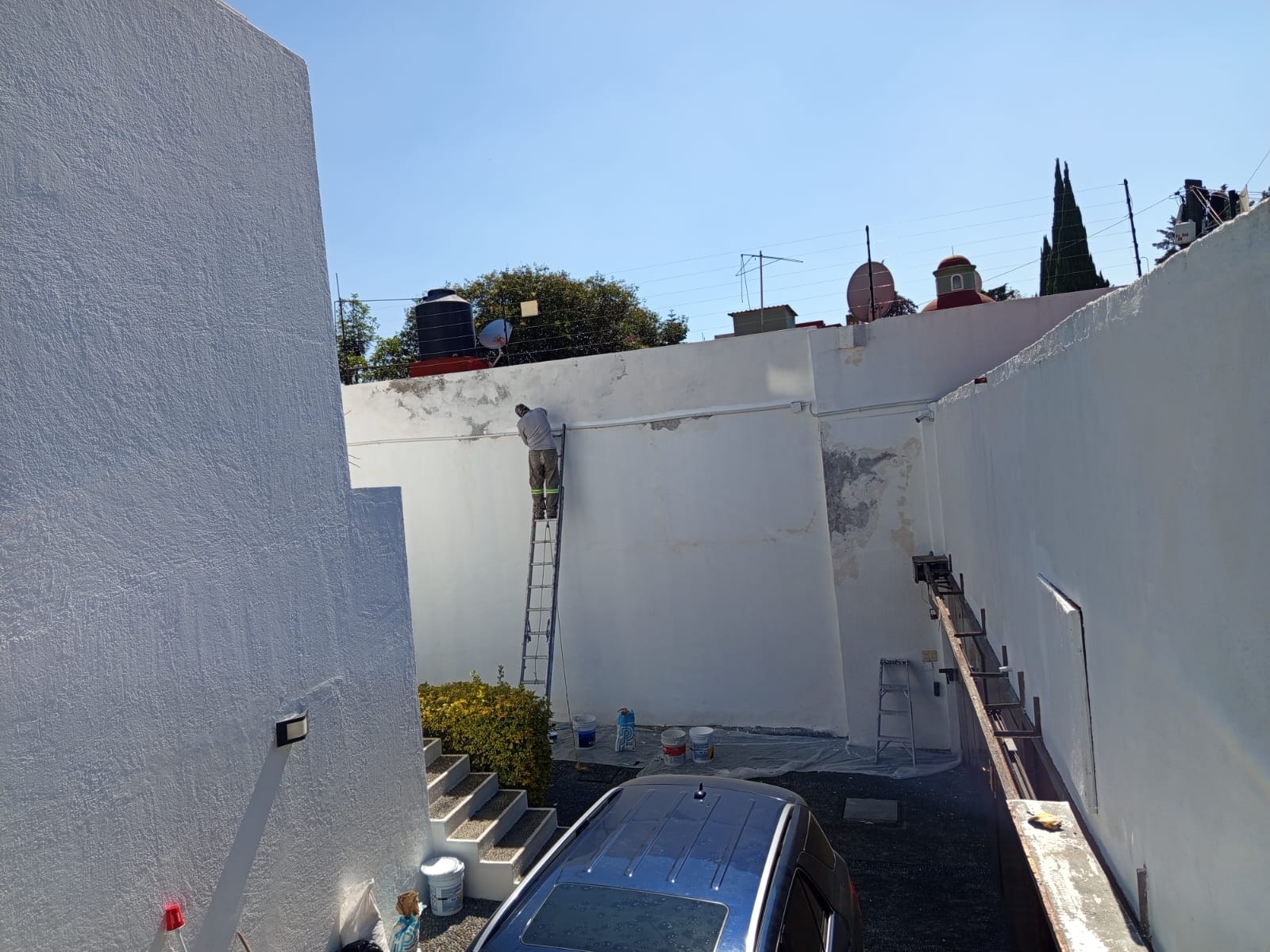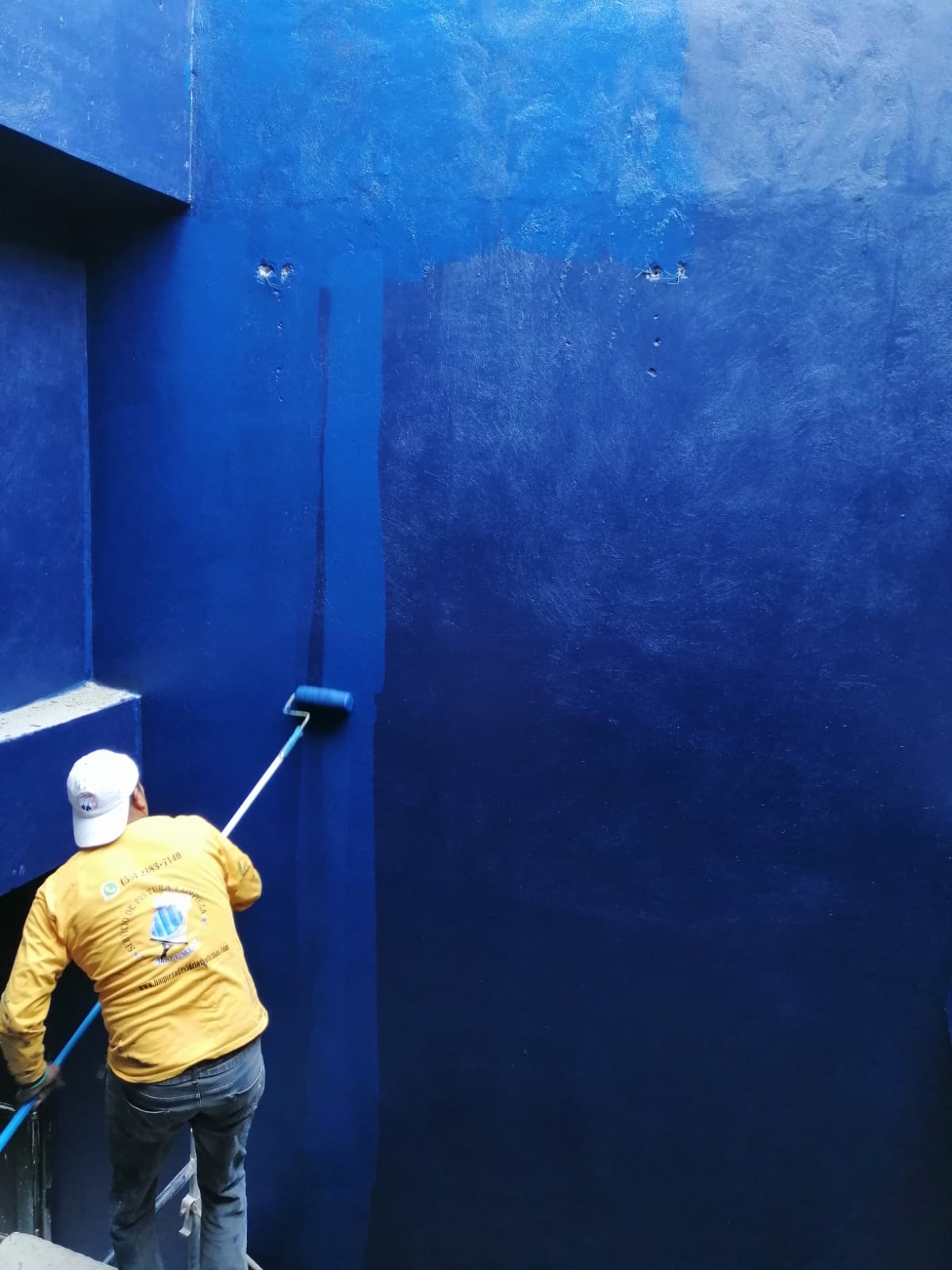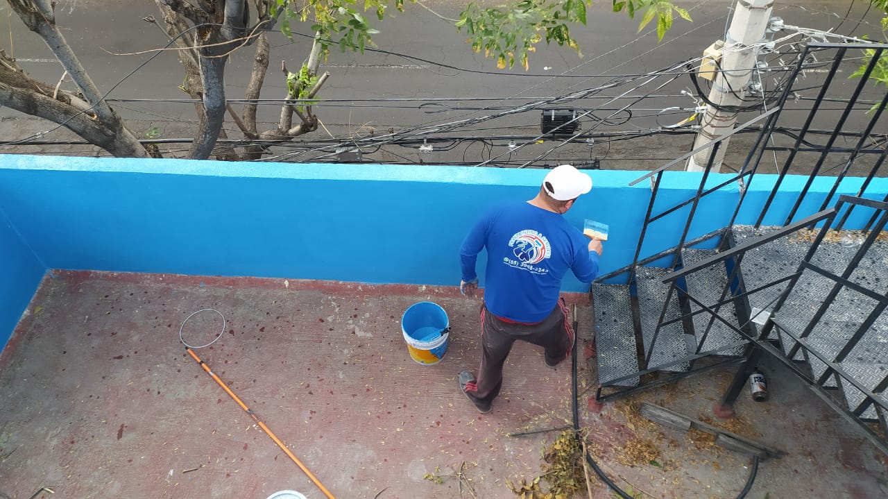• $70 M2 por pintar a dos manos de pintura del mismo color con resanado de paredes leves en exterior con una altura de más de 6 metros.