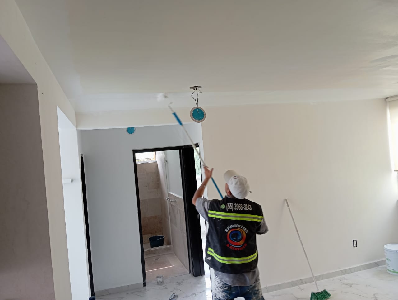 ✅ Escobas para la limpieza final del servicio de pintura.