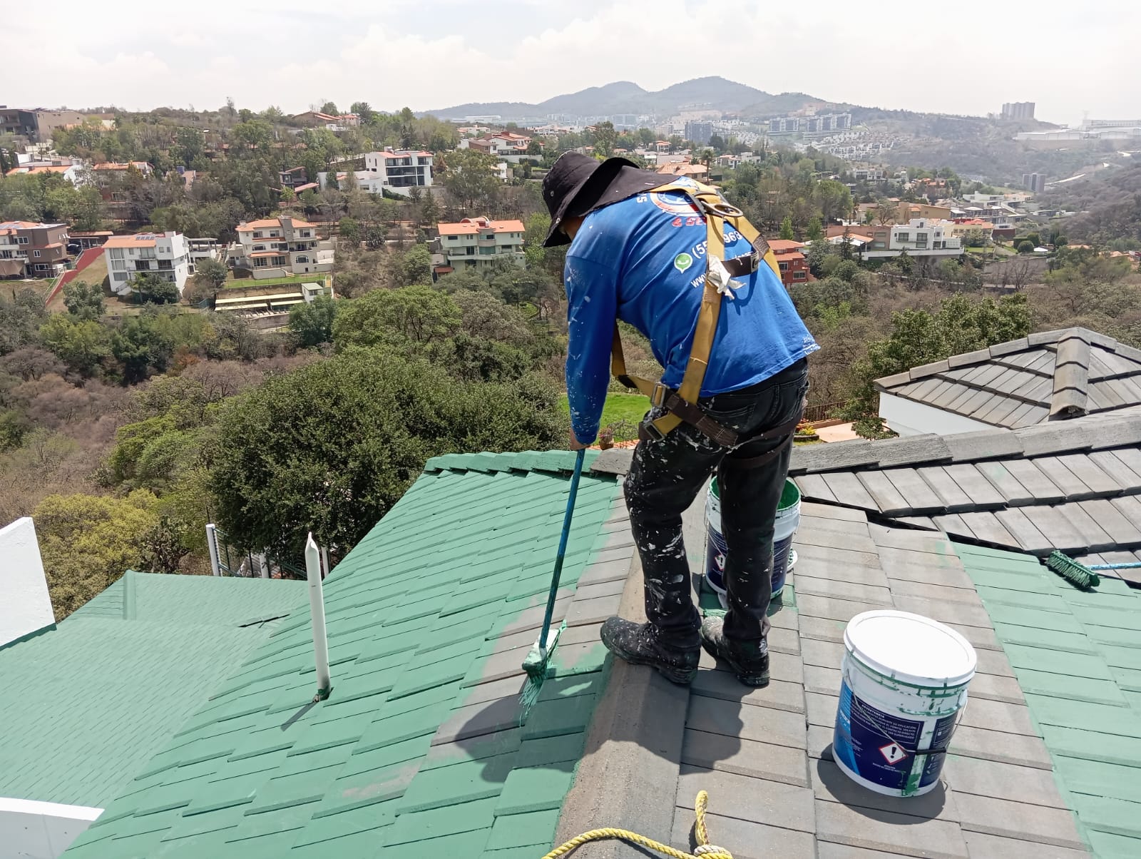 El servicio de pintura de casas en altura la zonas elevadas en cdmx tienen un grado de dificultad en el sentido de desplazarse de un lado a otro cuando un pintor esta colgado en un columpio con los lazoz de vida y sujetados a un arnes es donde deben utulizar sus técnicas para poder desplazarse de un lado para otro con la pintura y poder pintar adecuadamente sin estar pensando en donde están pintando y se pone mas dificil si empiezan fuertes aires con respecto a la estabilidad de su cuerpo del pintor y la pintura que tiene, es por esto que en todo servicio de pintura de casas en altura debe estar un pintor supervisando desde la parte de lo más alto a todos los pintores que estén suspendidos en su columpio pintando ya que este pintor en jefe que está supervisando debe proporcionar más pintura por medio de una cuerda tanto al llenar con más pintura cada recipiente tanto como si necesitan alguna herramienta él se las debe de proporcionar y lo más importante debe de estar revisando las cuerdas, el anclaje que estén en perfecto estado y que estén bien sujetados que no se aflojen las cuerdas o que no se empiecen a averiar para que se pueda hacer un cambio de la herramienta si es necesario sin arriesgar la integridad de cada pintor que está realizando el servicio de pintura en alturas.