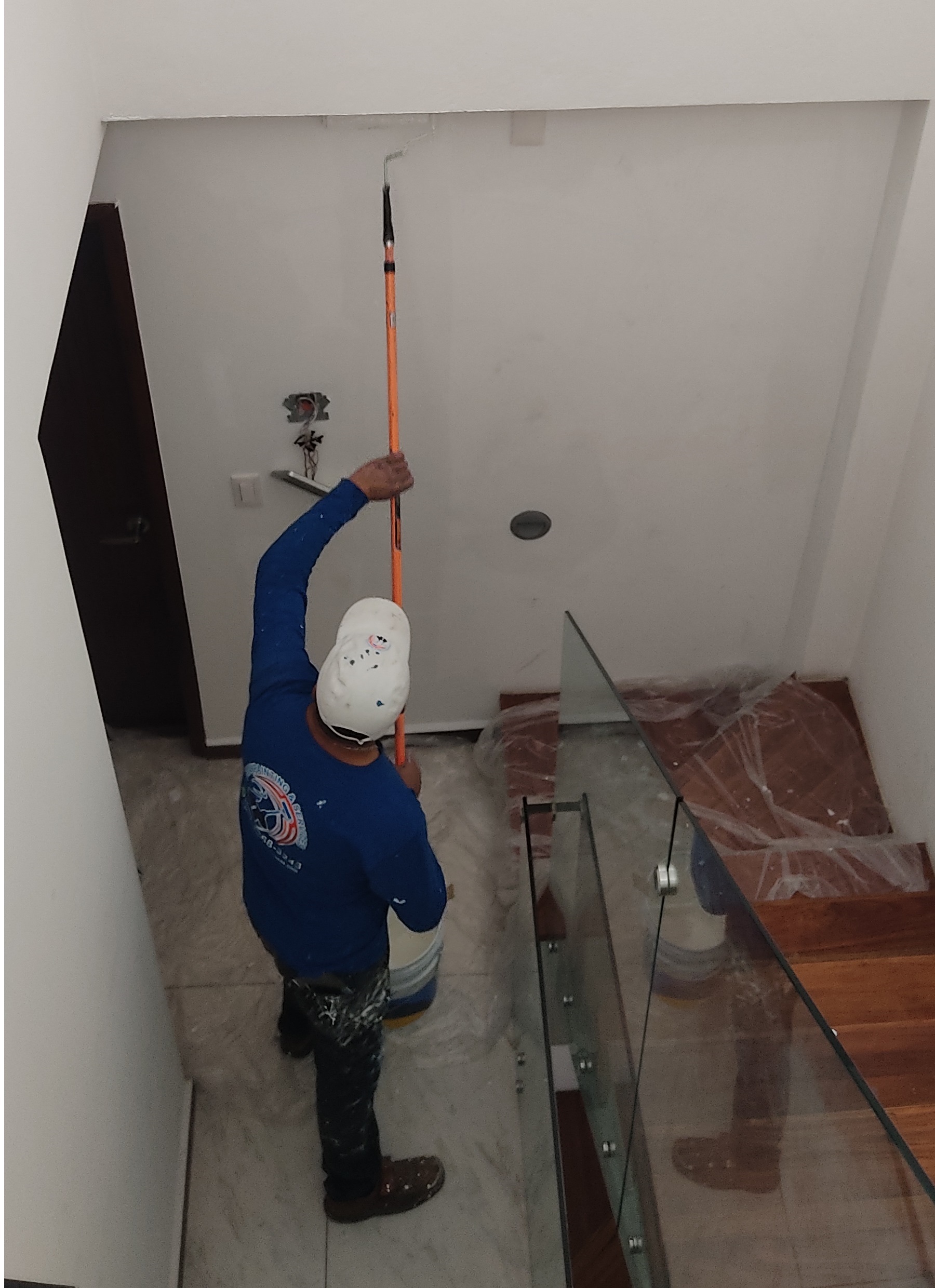 Un servicio de pintura de casas en el interior también incluye la limpieza final del trabajo de pintura retirando todo el escombro acumulado colocándolo en bolsas o costales haciendo una limpieza del área de trabajo, despintando las posibles manchas menores en el piso dejando el área totalmente limpia puede incluir servicios opcionales como la limpieza de los vidrios de las ventanas o la aplicación de papeles tapiz en los muros.